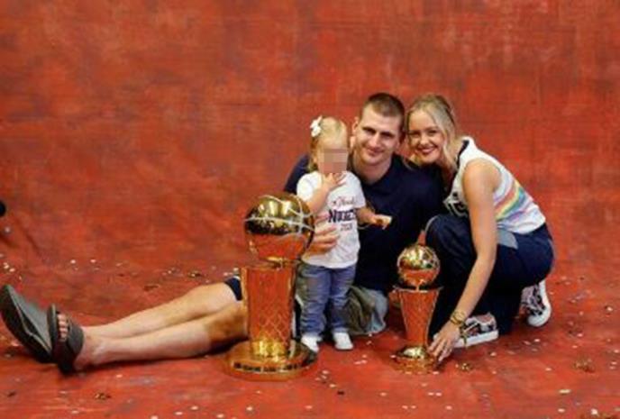 Nikola Jokić je istorijsku pobedu Denver nagetsa u finalu NBA lige proslavio sa Natalijom i njihovom ćerkom Ognjenom kao i sa ostalim članovima porodice.
