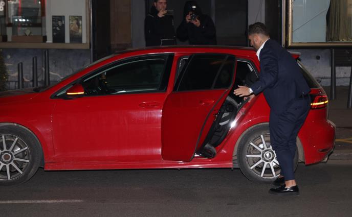 Katarina je sa sestrom i ćerkom sačekala Darka ispred MTS dvorane, a on je otišao po automobil što je uslikao i naš paparaco. Čim je stigao, mama je gurala kolica do automobila, a tad joj je muž priskočio u pomoć.