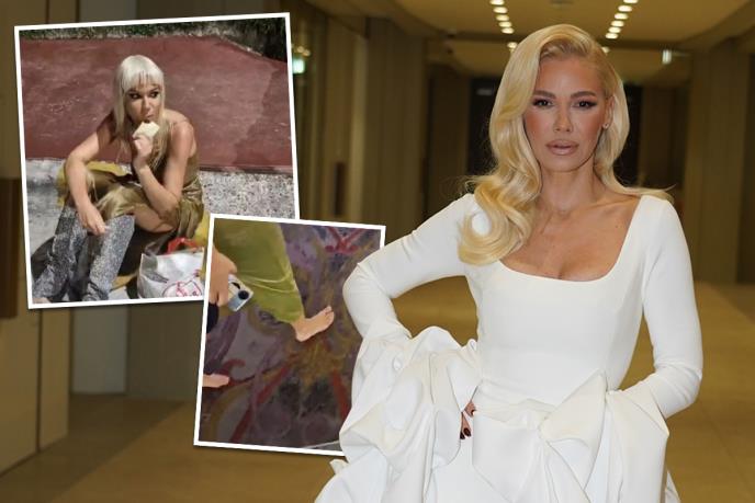 BOSA, BEZ DONJEG VEŠA, SEDI NA ULICI I JEDE! Skandalozne fotke Nataše Bekvalac, kese svuda oko nje, svi se pitaju šta joj se desilo?! (FOTO)