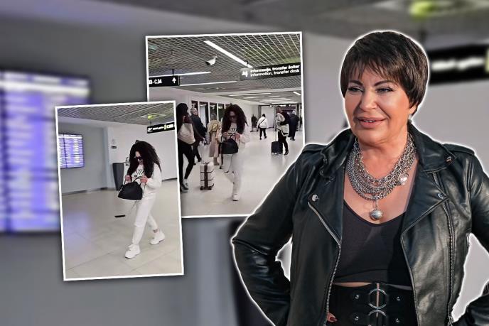 Stoja je bila u svom stilu i sa novom afro frizurom, koja je sve oduševila, a kako bi joj na letu bilo što udobnije, ona se odlučila za belu trenerku i patike, uz koje je ponela crnu tašnu.