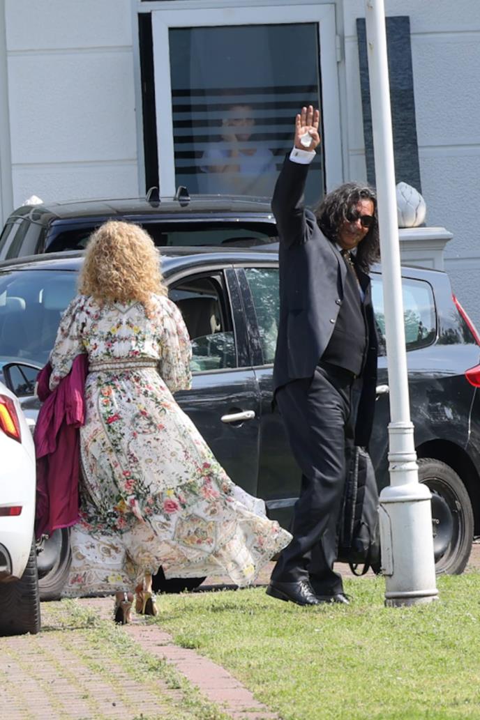 Ponosni tata za ovaj važan dan odabrao je da obuče crno odelo. On nije krio koliko je srećan, a pre nego što je ušao u prostor koji je njegova mezimica odabrala za izgovaranje sudbonosnog "da", a do kojeg je došao taksijem, podigao je visoko ruku i mahnuo okupljenima, kao i novinarskim ekipama.