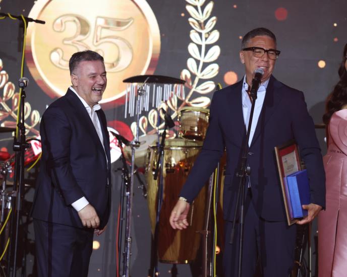 - Moram da pomenem i, 24 godina saradnnje je iza nas, on mi je i kum, moram da pomenem i zamolim veliki aplauz za moju kumu, Jovanku Obradović, koja je trpela dosta toga i kada su deca bila mala i kada su porasla... Dosta je tu odsustva od kuće bilo, kada si ti ostajala i drago mi je da si večeras ovde. Puno mi je srce. Čestitam, Bane moj dobri, živeli!