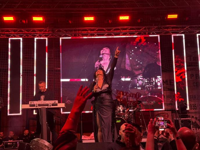 Dobro veče dragi moji. Ja sam poslednjih dana izuzetno lepo raspoložena i ništa mi nije draže nego sa vačeras tu sreću podelim sa vama- rekla je regionalna muzička zvezda koja je potom pesmama zapalila masu, i priredila spektakl za pamćenje.