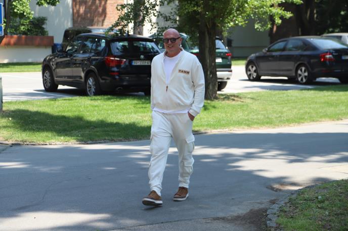 U pantalonama svetlije nijanse i istoj dukserici Mili je rapsoloženo koračao ka studiju gde su ga dočekale ostale kolege iz žirija.