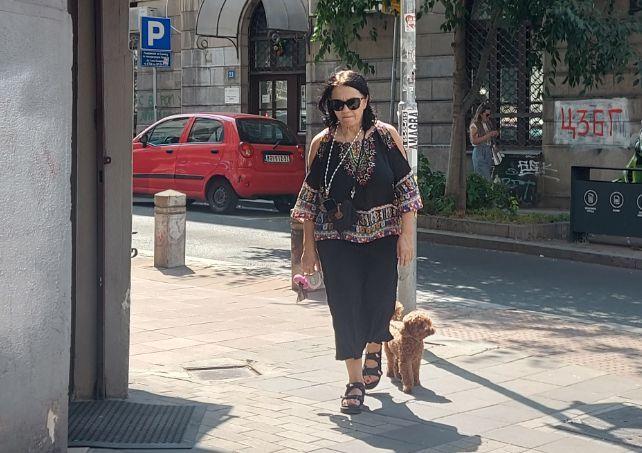 Ljiljanu Blagojević je naš vredni paparaco uslikao u centru Beograda. Glumicu smo sreli usred podneva na ulici kako šeta sa svojim psom. S obzirom na to da je temperatura ovih dana i do 35 stepeni, na sebi je imala šarenu košulju, crne lanene pantalone, sandale i velike crne naočare. U jednom momentu, dok je čekala na semaforu, bilo joj je toliko vruće da je brisala znoj s čela. U jednom trenutku je svratila do menjačnice, a onda nastavila svojim putem.