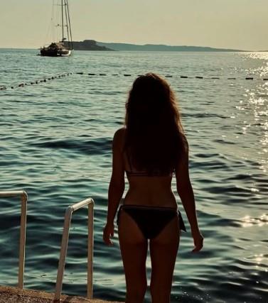 Osim slika u dvodelnom kupaćem koje su oduševile njene pratioce, tu su i slike kada Sanja uživa na plaži i jede lubenicu.
