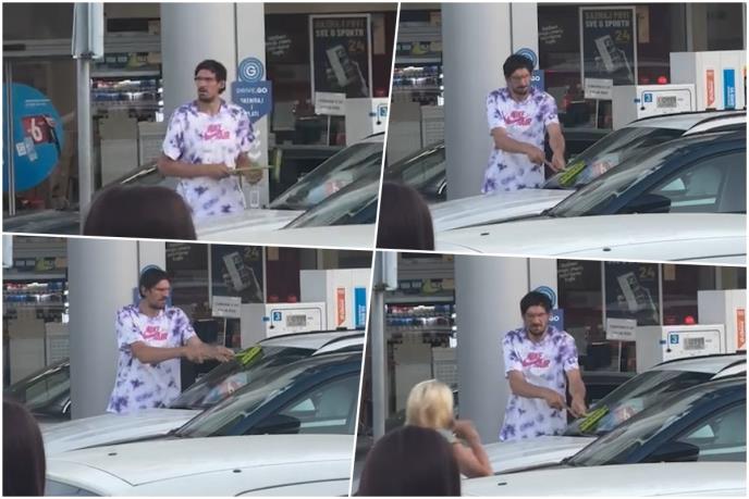 Em je sam natočio gorivo, em je sam oprao šoferku. I to nije sve. Bobi se srdačno pozdravio sa ljudima koji su ga prepoznali,dok su deca strpljivo čekala da očisti staklo da bi se i oni fotografisali sa njim.