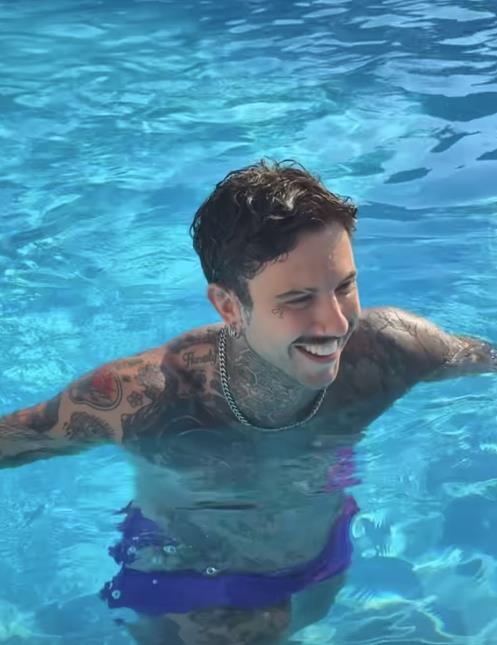 Dok su zajedno uživali u vodi i suncu Mina ga je snimala, pa su svi komentarisali njegovo telo, kao i tetovaže koje ima od glave do pete.