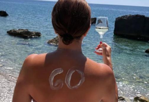 Na Instagramu je objavila romantičnu fotografiju na kojoj je jasno da uživa i jedva očekuje sve ono što dolazi. Sa čašom vina u ruci i čarobnim pogledom na more, slikala se dok joj je na leđima od mleka za sunčanje napisan broj 60.