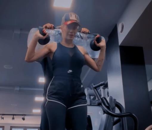 Naime, ona je vežbe radila u crnoj uskoj majici, a kako je ona imala i providan prorez, grudi su bile u prvom planu, te je prizor takođe prijao i pripadnicima jačeg pola.