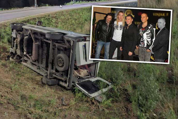 Članovi benda su morali da izađu kroz vrata jer se vozilo prevnulo na bok.. Na sreću, niko nije zadobio ni posekotine.