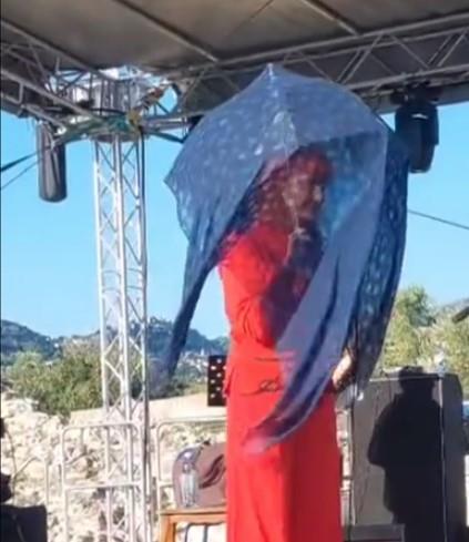 Pevačica je na probu kako bi se sačuvala od sunca došla s kišobranom, a preko kišobrana je stavila i maramu kako bi u potpunosti bila sigurna da joj sunca neće naštetiti.