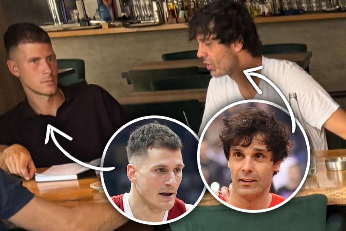 Teo je Nedi stručno objašnjavao poslovne prilike u sportu. U prilog tome svedoči fotografija koju je napravio naš izvor koji se u tom trenutku zadesio na istom mestu s košarkašima.