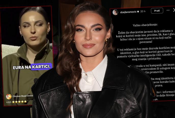 - Želim da obavestim javnost da je reklama u kojoj se koriste moje ime, prezime, lik, kao i glas lažna i da ja s njom nisam ni na koji način povezana! U toj reklami je bez moje dozvole korišćen moj identitet, a glas koji se koristi generisan je pomoću veštačke inteligencije (AI), takođe bez mog znanja i pristanka. Nisam učestvovala u toj kampanji i nemam nikakve veze s proizvodom ili uslugom koji se na taj način promovišu - poručila je Džejla.
