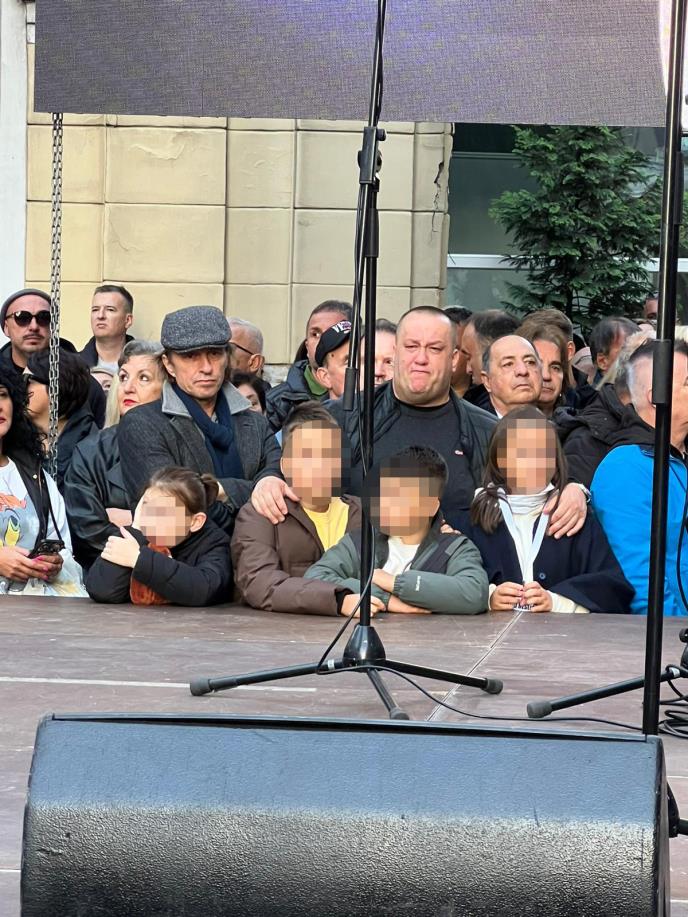 Tu su i njegovi saradnici, prijatelji, ali i sin Dino, kao i njegova deca, Halidovi unuci. Oni stoji odmah pored bine i tužnim pogledom prate sve šta se dešava na skupu. Sin Dino, koji je do poslednjeg dana bio uz svog oca 24 sata, ne prestaje da plače. Dok se čuje hit "Romanija" suze mu se slivaju niz lice i sve vreme grli svoje naslednike, koji su legendarnom pevaču bili najveća radost.