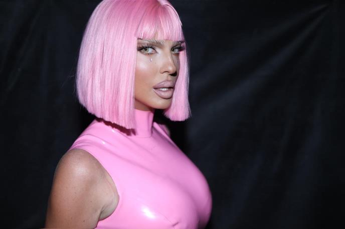 Jelena Karleuša se pojavila na snimanju emisije Pinkove Zvezde u vrlo upečatljivom izdanju – sva u roze tonu: roze lateks, roze detalji i roze kratka frizura koja je odmah izazvala pažnju.