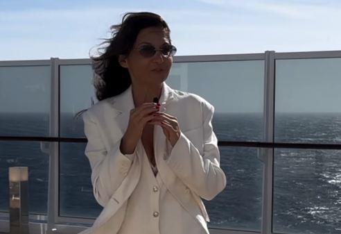 Na fotografijama koje je podelila sa pratiocima vidi kako uživa na palubi u beloj odevnoj kombinaciji.