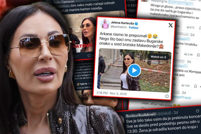 - Čim neko malo na**pi odmah pokazuje manire karton naselja. Stiže karma, draga moja. Seti se kada si pre 12 godina plaćala naslovne strane da Karleušin spektakl nazivaju debaklom... Da ne pričam šta si sve još radila Jeleni i drugim kolegama. Šta li će tek biti kada te stigne Božja kazna? Nisu je ispoštovali jer su po prvi put preneli da joj se nešto negativno desilo? Pri čemu ne mislim da je žena kriva za zastavu, samo su mediji preneli događaj. Pritom "NJENI MEDIJI", to se definitivno ne odnosi na medije iz njene države ali 'ajde, šta god... Kao u Beogradu da ogrne hrvatsku zastavu, e otprilike tako. Madona iz Žitorađe pala sa visine ega na dno inteligencije.