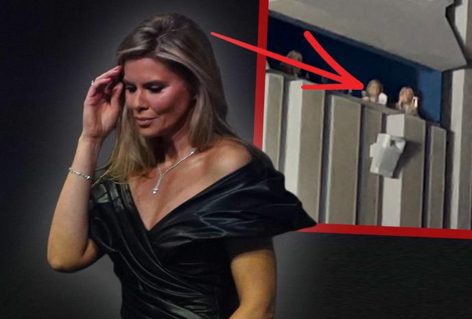 Melina je na koncert došla u pratnji prijateljice, i to s velikim zakašnjenjem, pa se odmah uputila ka loži, kako ne bi privlačila pažnju. Tu smo je iz daljine i uslikali.