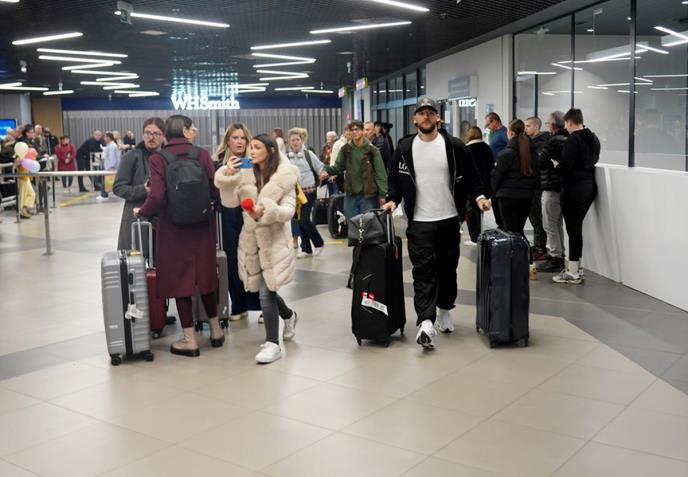 Njih dvoje su vukli kofere, a Anastasija nije skidala osmeh sa lica.