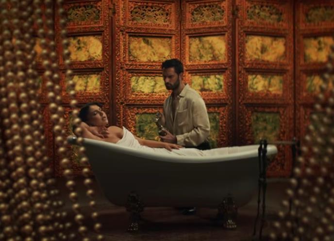 Za pesmu "Sam, sam", snimila je i zanimljive kadrove, u kojima zgodni muškarac kupa zlatom u kadi, ali joj služi i zlatni napitak u šoljici.