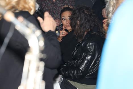 Pevačica i kompozitor su sve vreme ćaskali i bili nasmejani, te su mnoge prisutne iznenadili kad su ih videli zajedno.