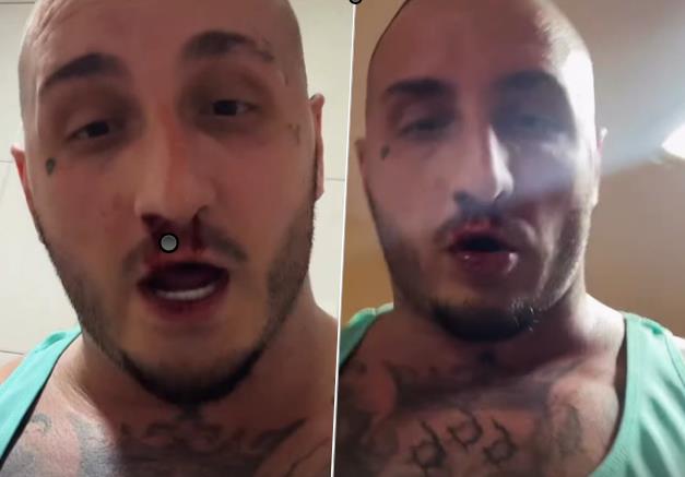 KRV MU CURI IZ NOSA, SPOMENUO I BATINE! Srpski reper usred noći objavio jeziv snimak! (FOTO)
