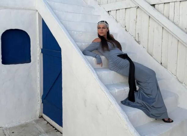 Na slikama se vidi prepoznatljiva arhitektura belih zidova i plavih detalja koja neodoljivo podseća na kadrove iz čuvenog spota planetarno popularne reperke. Dok je Cardi B na ovoj lokaciji dominirala u vatreno crvenoj haljini sa raskošnim ogrtačem, Azra se odlučila za nešto svedeniju, ali podjednako luksuznu varijantu.