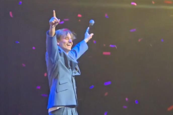 Mladi pevač je gotovo u trku izašao pred publiku, vidno ushićen, pa je u jednom trenutku čak i zamalo sapleo, na sreću, uspeo je da zadrži ravnotežu, što je izazvalo dodatne simpatije prisutnih.
