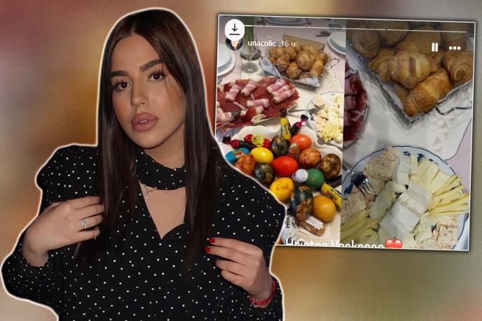 Una je polazala niz detalja sa proslave praznika u porodičnom domu - bogata trpeza, pršuta, više vrsta sira, kiflice, vaskršnja jaja ofarbana raznim tehikama. Na stolu je bilo mnogo đakonija, što je Una objavila na Instagramu, baš kao i prelep buket cveća koji je vrlo moguće dobila od deset godina starijeg dečka.