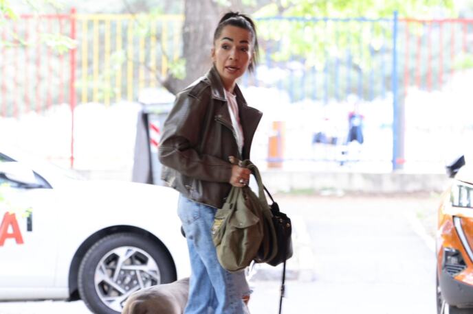 Marija je u opuštenom izdanju, u jednoj ruci je držala povodac na kom je bio pas, a drugoj torbu.