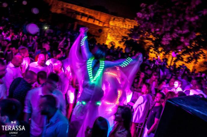 Kalemegdan je te večeri bio epicentar zbivanja, a nezapamćena posećenost ovog kluba još jedan je dokaz zbog čega beogradski klaberi obožavaju "Terassu". Separei i stolovi bili su ukrašeni belim balonima, prezgodne devojke nosile su futurističke balske haljine, a oko kluba su bili postavljeni bacači plamena što je dodatno podgrejalo atmosferu.