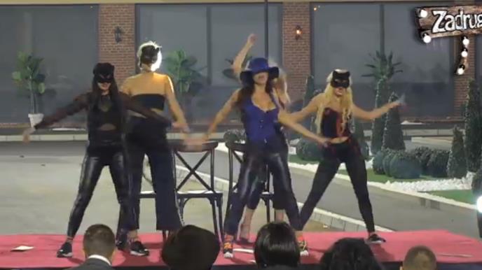 Stanija, kao predstavnica ove grupe se u plavom šeširu i izazovnoj kombinaciji potrudila da svojski odradi ovu koreografiju, dok su je ostale zadrugarke pratile u stopu.
