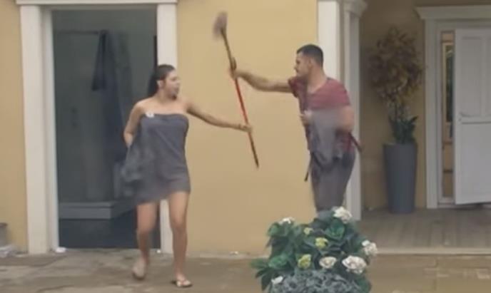 Zadrugarka je pošla do kupatila, Santana ju je stigao, a onda se ona sa malim peškirićem buvkvalno rvala sa cimerom i to sa četkom za čišćenje. Da je vrag odneo šalu, shvatili su i ostali zadrugari pa su im pritrčali ne bi li ih razdvojili.