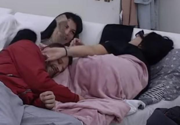Zerina Hećo i Jelena Krunić odmarale su u krevetu, a pridružio im se Vladimir Todorović koji je bio veoma pospan. On je legao na Zerininu nogu, dok ga je ona mazila po kosi.