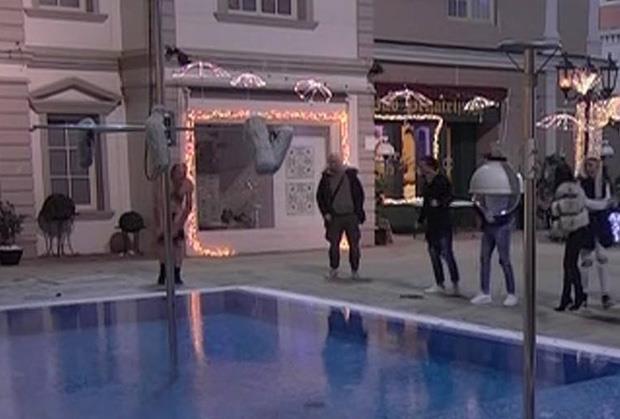 Karađorđe je došao do bazena, a pratila ga je i nekolicina zadrugara. Svi su se smejali i navijali da skoči, a onda je on skinuo gaće.