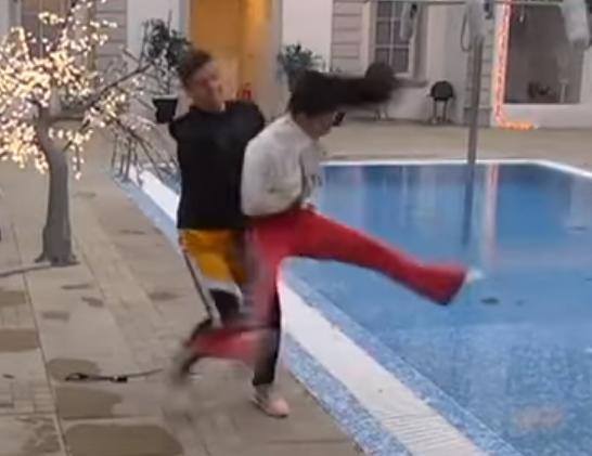 Oni su se šalil ipored bazena, a on je umalo Koraćevu ubacio u bazen.