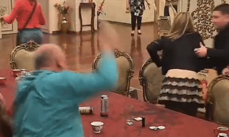 Obezbeđenje odmah je skočilo na njega i izvelo ga napolje, a za stolom u vili i dalje je vladao haos.