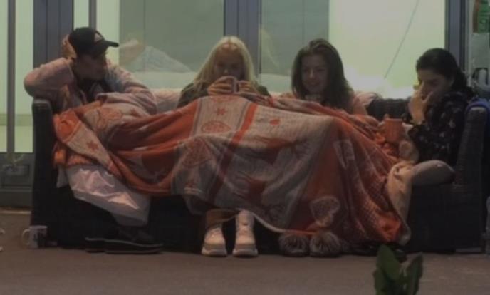 Zadrugarke su se sve vreme smejale odgovarajući jedna drugoj na škakljiva pitanja. Nekoliko puta dizale su i ćebe kojim su zbog hladnoće bile prekrivene, svesne činjenice da "nije baš sve za javnost".