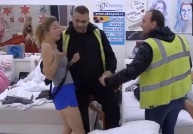 Obezbeđenje je došlo po takmičarku, pa se je uprskos njenom opiranju, izbacili napolje.