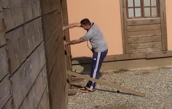 On je lomio ogradu kako bi sebi obezbedio izlazak napolje, ali u tome nije uspeo, pa je brzo i odustao.