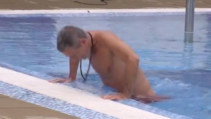 Lepi Mića iskoristio je dan za vežbanje i to u bazenu, u koji se mnogi ne bi usudili da uđu s obzirom na to da je temperatura pala.