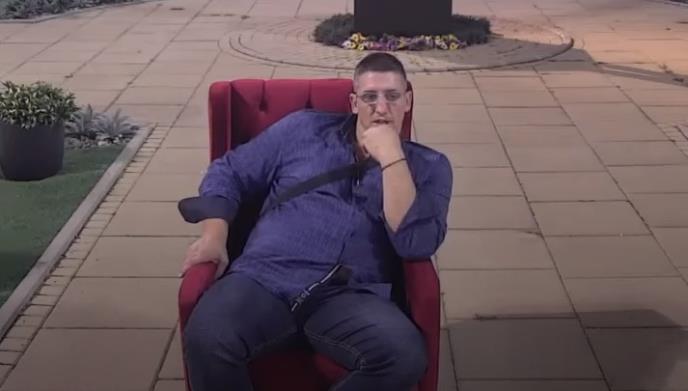 Kristijan Golubović osamio se u dvorištu, a potom je seo u fotelju ispred kamere kako bi se obratio svojoj porodici.