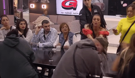 Maja se toliko iznervirala da je skočila sa svog mesta, uzela punu flašu vode i ispolivala svog bivšeg ljubavnika preko stola. Janjušević nije dugo izdržao, pa joj je brže-bolje uzvratio istom merom, punom flašom vode.