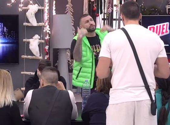 - Ja sam tvoja noćna mora, zapamti! Slomi sebi prst, pa preti nekom drugom. Meni je teško zbog porodice, a tebi je lepo u Tarinom zagrljaju, dok neko plače. I devojka ti sada spava, jer je plakala do deset jutros u hotelu. Žena plače zbog tebe, bitango jedna! Ženi daj ubruse, jer ona plače zbog tebe. Ti si moja igračka, pregazio sam te sinoć, završio si u suzama! Sram te bilo, divni čoveče, zbog koga neko plače. Zaljubljen si i nisi racionalan. Ja mogu da se zaljubim, jer sam slobodan, ali ti si oženjen. Gledam te kao nulu, varaš ženu pred milionima, ona cvili van - odbrusio je Tomović.