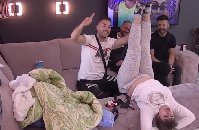 Međutim Miljani nije bilo dovoljno da je masira Anđelo samo, pa je zamolila i Alena Hadrovića da joj pomogne, što je on i učinio. Na kraju su muškarci pred kojima se Miljana uvijala pridržali njene noge kako bi se što bolje istegla.