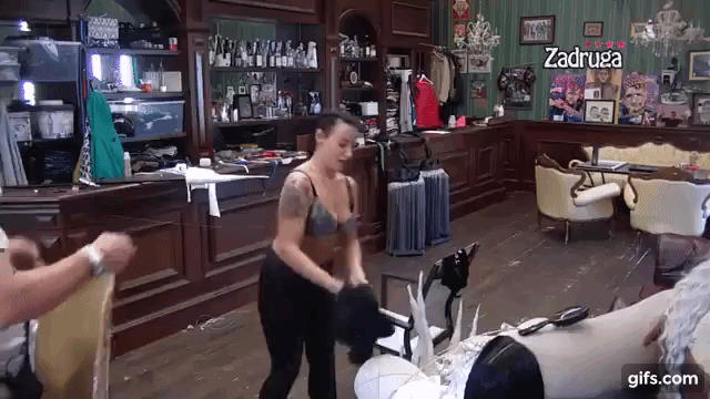 U pabu se ekipa spremala za nastup, pa je došao na red da i Kristina Spalević isproba svoj kostim, a u tome joj je pomagao Kristijan Golubović sa kojom je u prisnom odnosu.