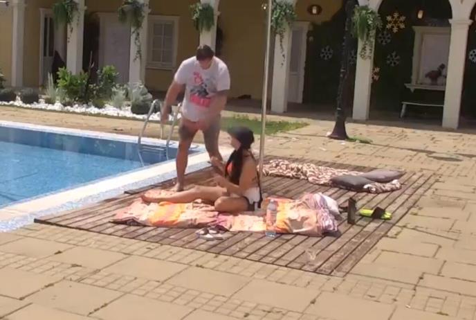 Kristijan Golubović i Kristina Spalević su bili u dvorištu velelepnog imanja i slušali nastupe koje je zadruagrima pustio Veliki šef sa Zadrugovizije. Njih dvoje su igrali sve vreme.