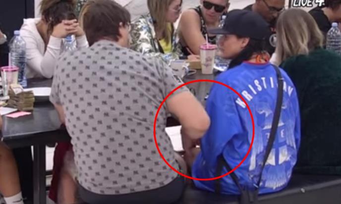 U jednom trenutku Kristijan je počeo da opipa Spalevićevu na grudi i nogu, a ona se nije pomerala.