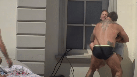 Kristijan Golubović namazao se čokoladnom tortom. On je stavio tortu po sebi, pa je jurio Aleksandru Nikolić da je zagrli.